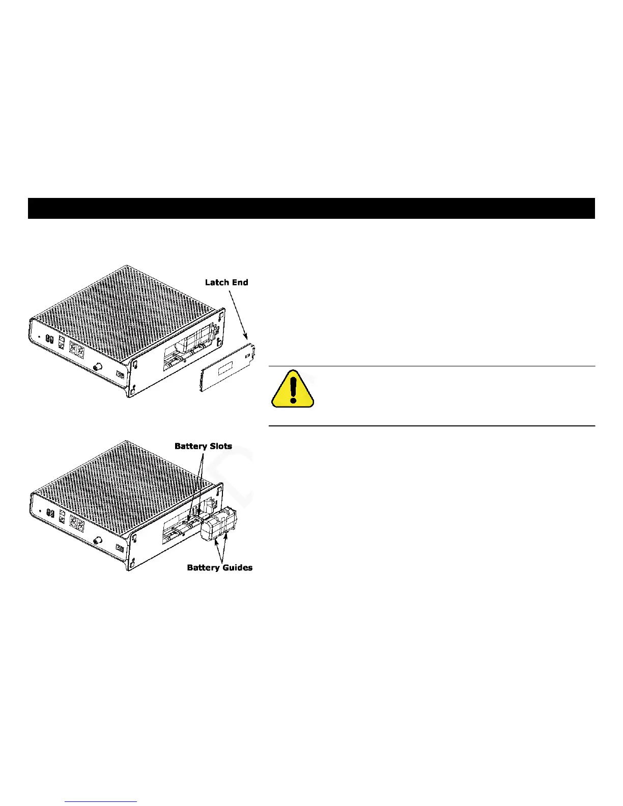 on the Telephony Gateway and slide the battery into the bay. The diagram