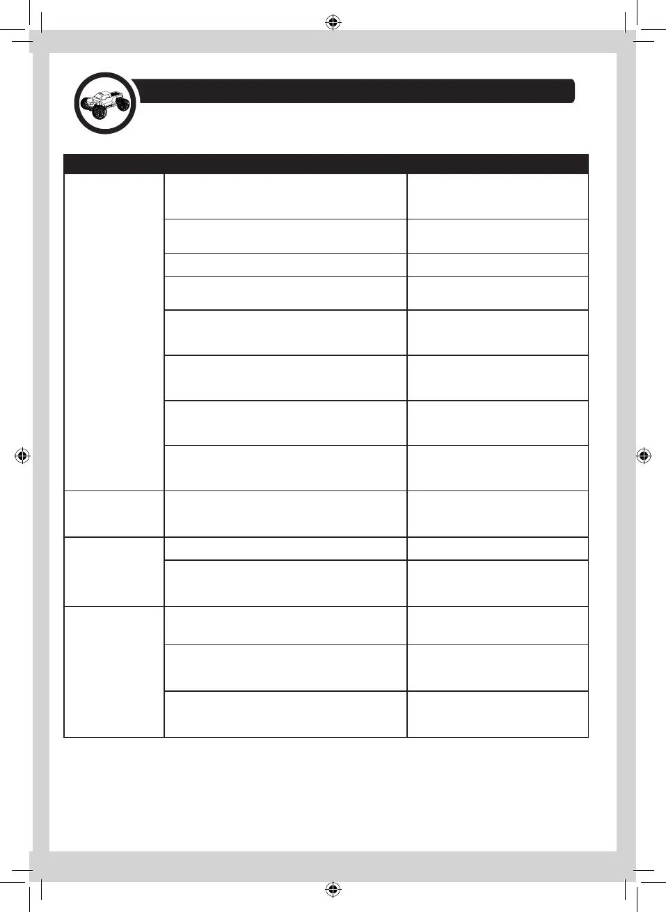 Câbles moteurs ou ESC défectueux Vérier l’état, reconnecter et isoler