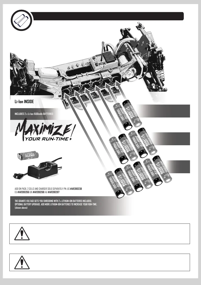 OPTIONAL BATTERY UPGRADE. ADD MORE LITHIUM-ION BATTERIES TO INCREASE YOUR RUN-TIME.