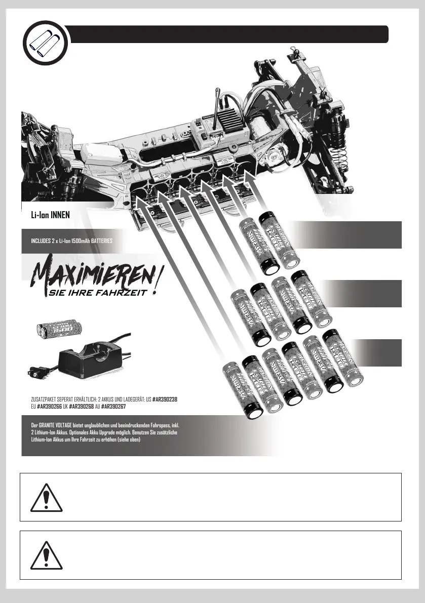 Bitte benutzen Sie ausschliesslich vollständig geladene Akkus in Ihrem Fahrzeug. Eingesetzte Akkus