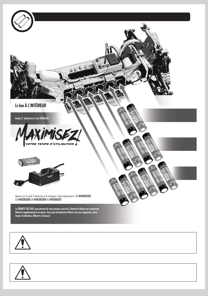 N’utilisez que des batteries complètement chargées dans votre véhicule. Le montage des batteries qui ne sont