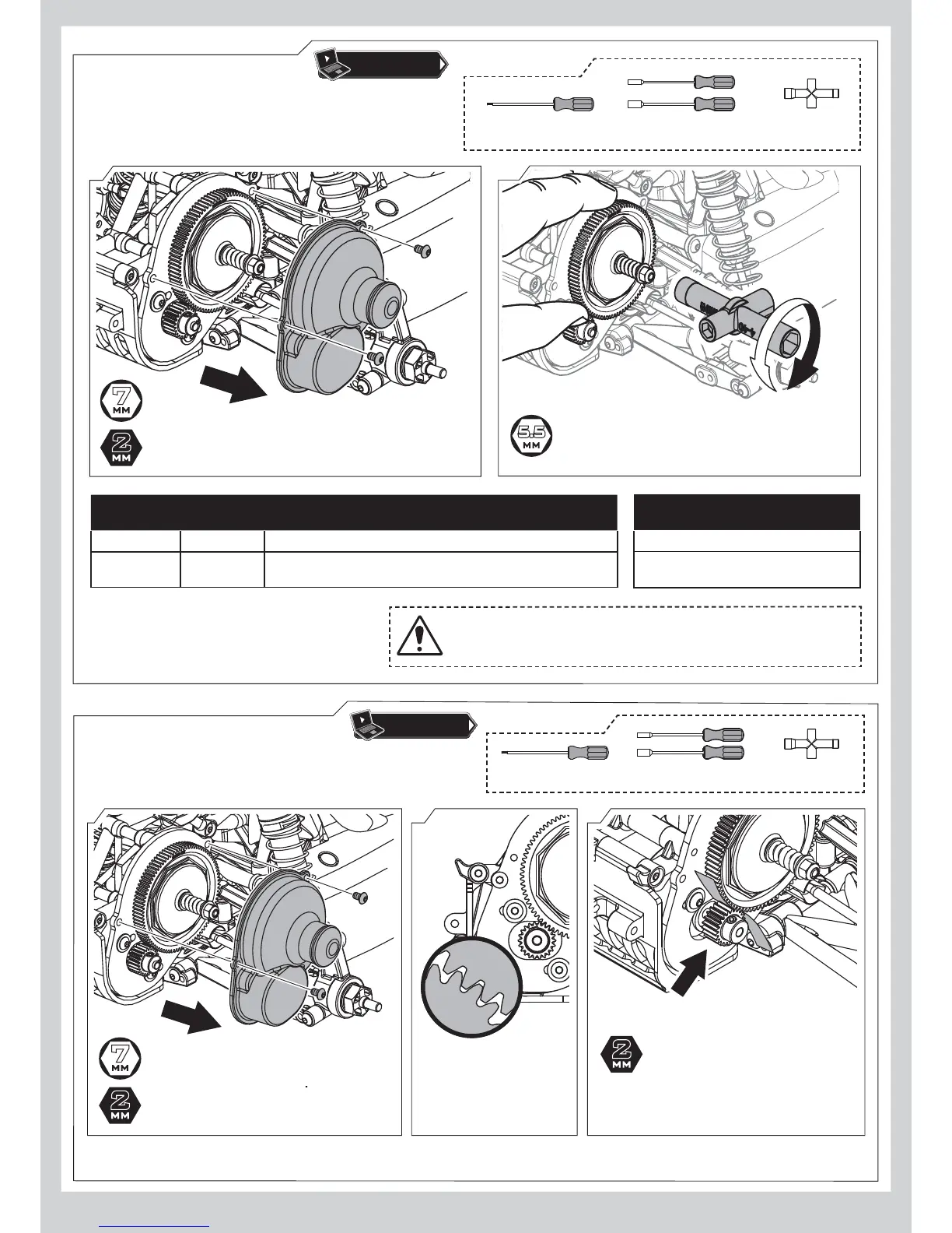 Remove spur gear cover with 2mm hex