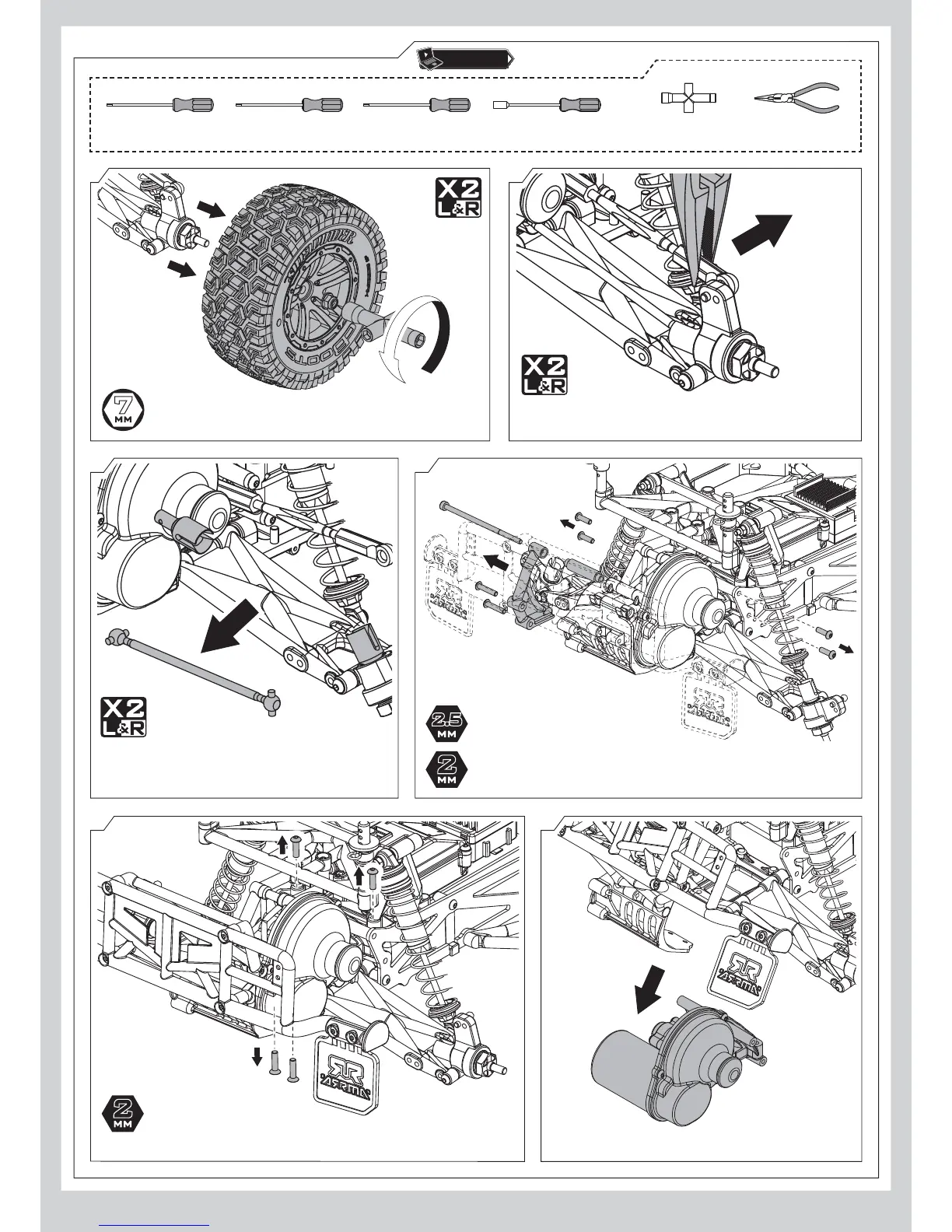 short motor guard bolts and four gearbox/chassis bolts with 2mm