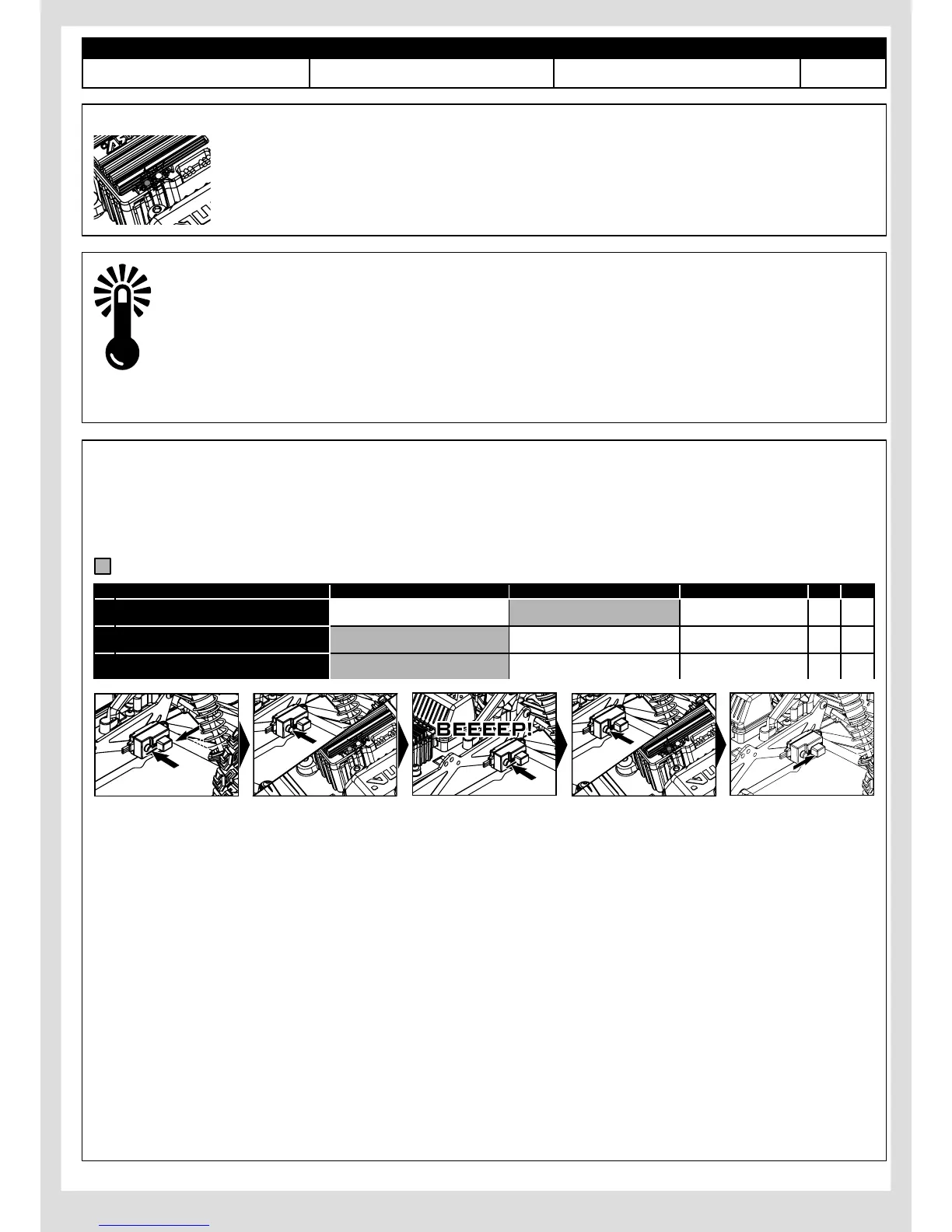 les LED Rouge clignoteront. Une fois que le variateur électronique aura refroidi, il se remettra à fonctionner normalement.