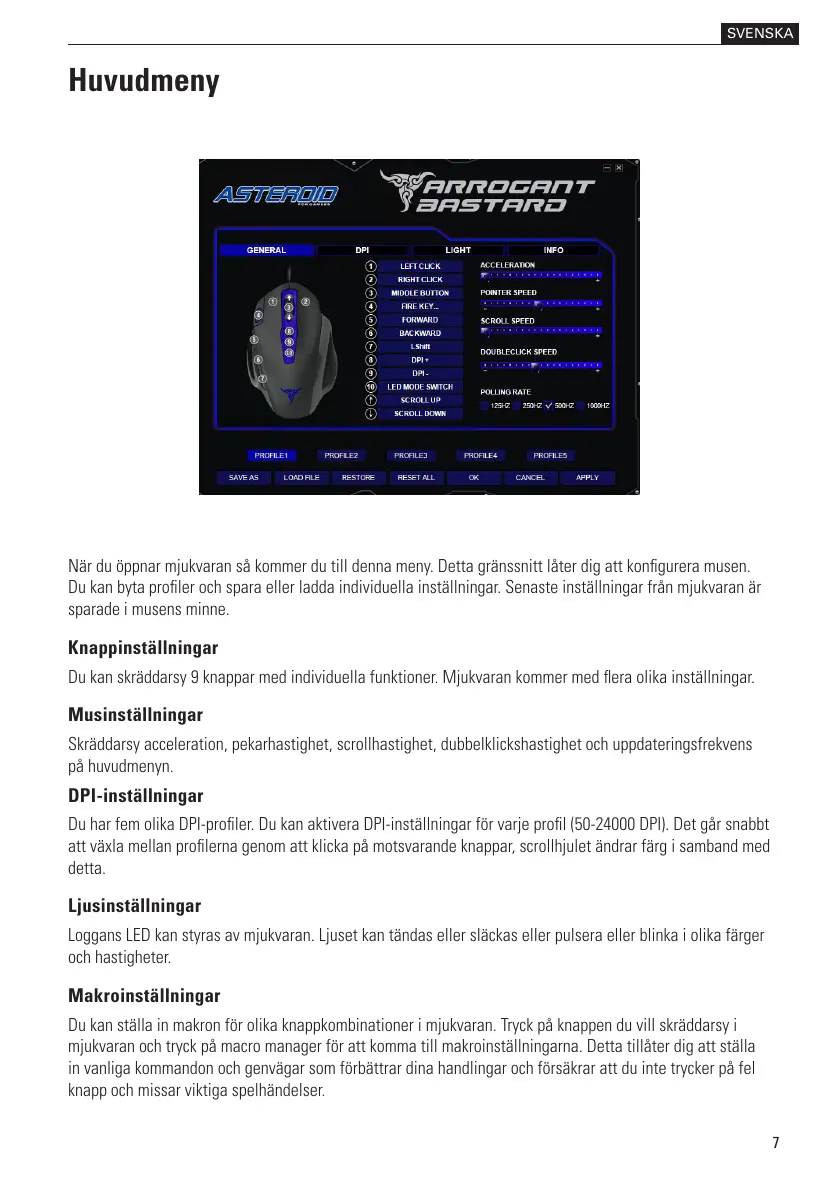 När du öppnar mjukvaran så kommer du till denna meny. Detta gränssnitt låter dig att kongurera musen.