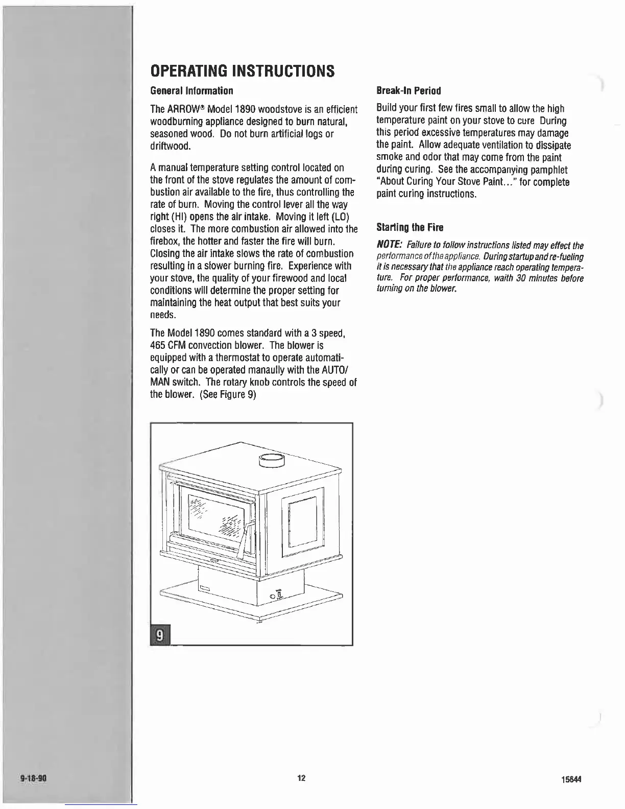 Arrow 1890 - OPERATING INSTRUCTIONS; General Information; Break-In Period; Starting the Fire