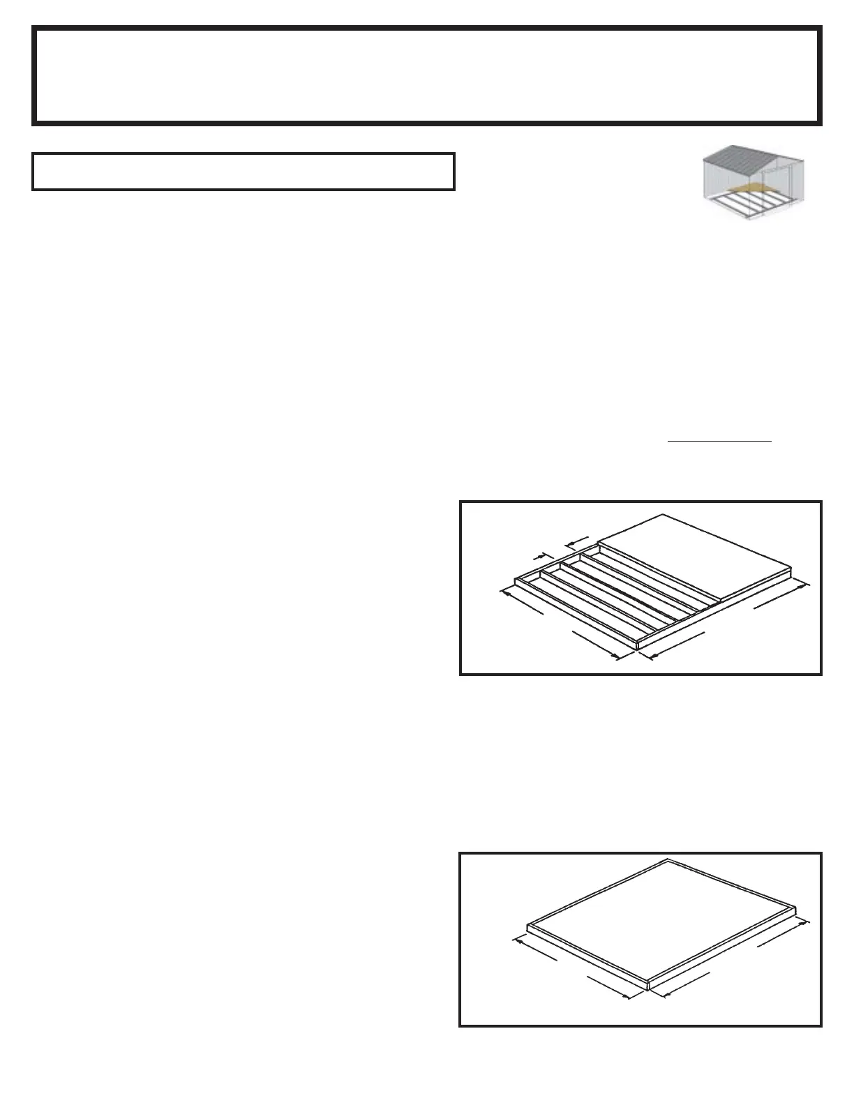 The slab should be at least 4" (10,2 cm) thick. It must be level and flat to provide good support for the frame.