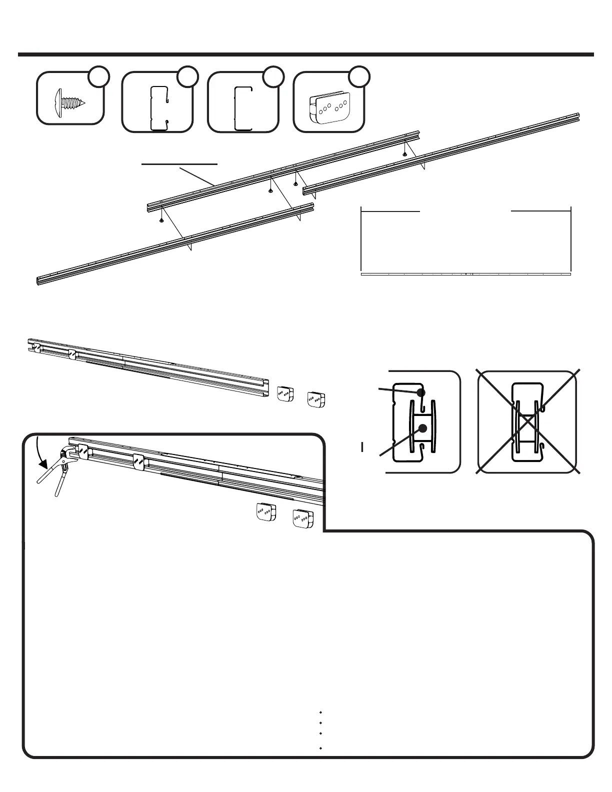 Les coulisseaux doivent être placés dans le rail de porte avant la pose du rail. Toutefois, si cette étape est omise ou si les