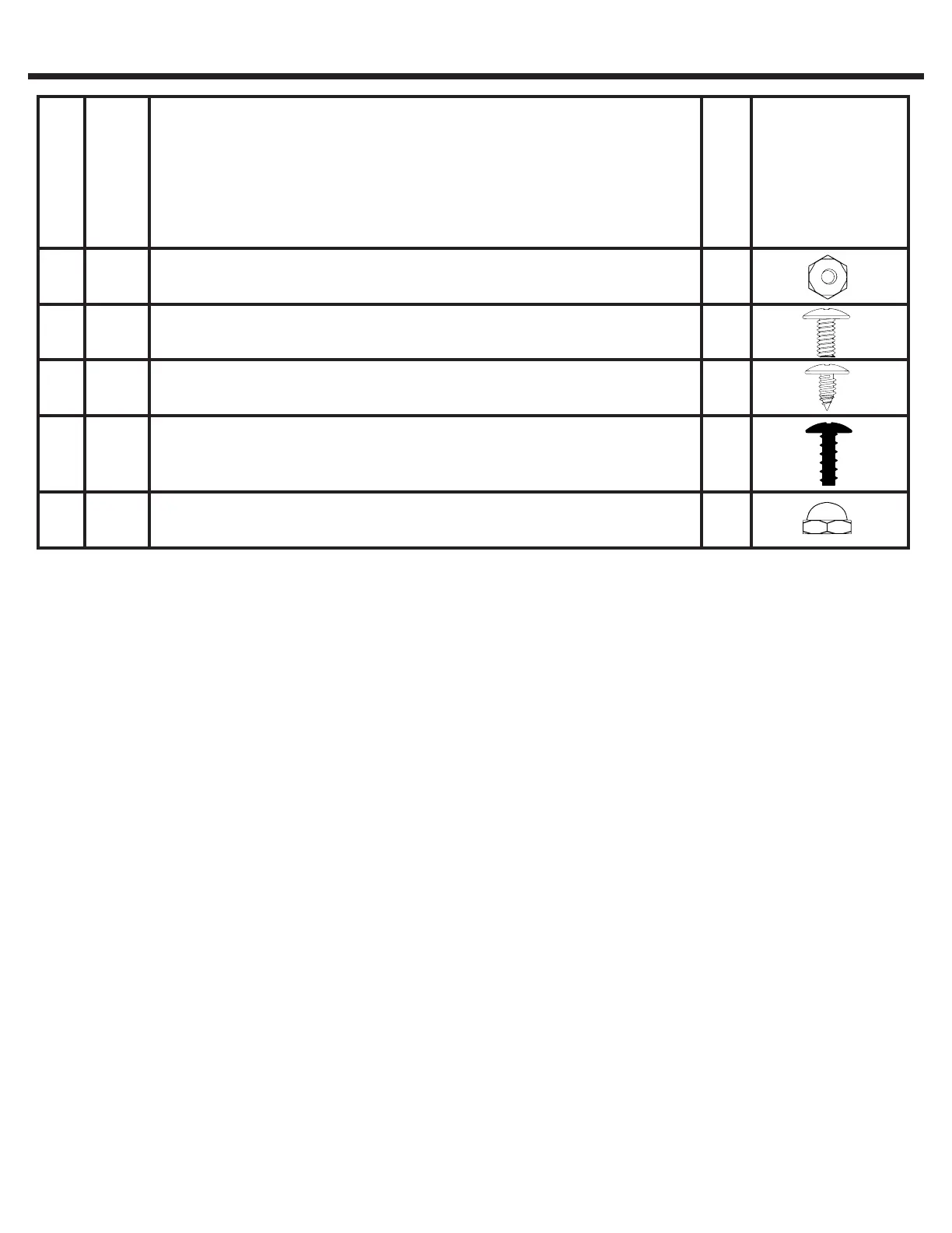 de cada página. Si no está seguro de qué tornillo o perno de usar, compárelo con la imagen y use el que