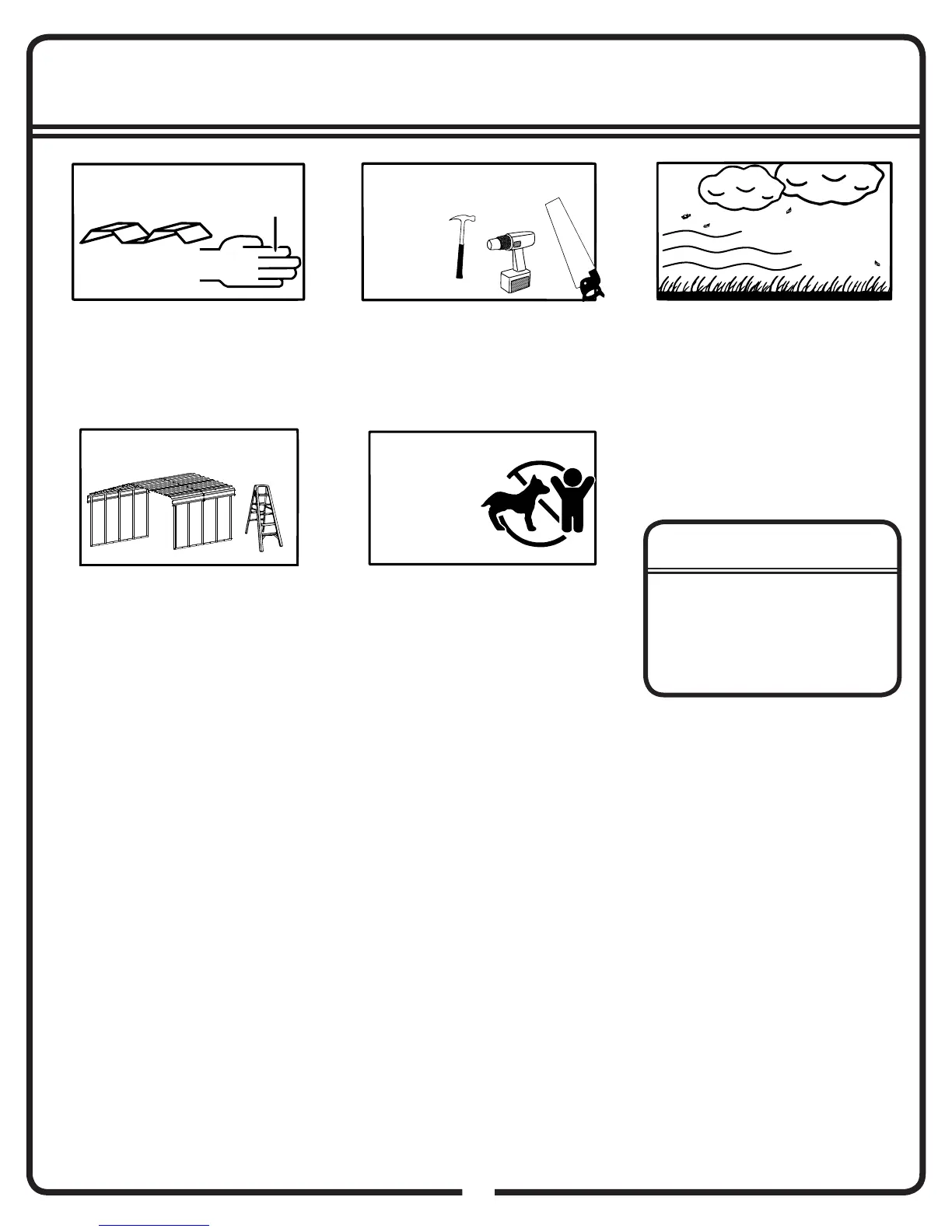 Die Sicherheitsmaßnahmen MÜSSEN jederzeit befolgt werden, während Ihr Schuppen montiert wird!