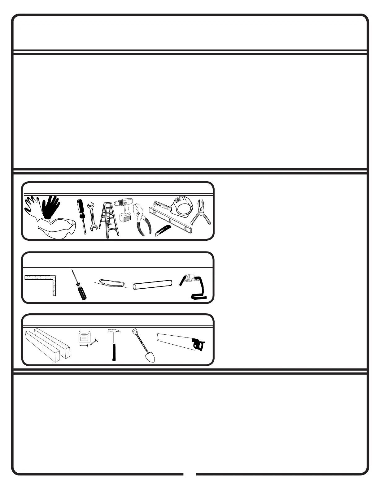 • Before assembling any parts, your base should be constructed and an anchoring system should be ready to use.