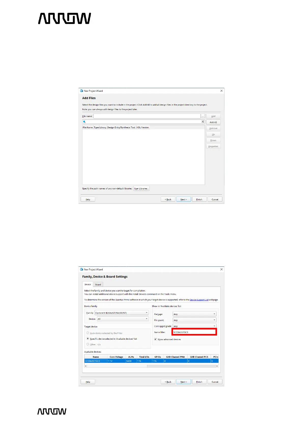 5.1.10 Select the Device Part Number of the CYC5000 Board