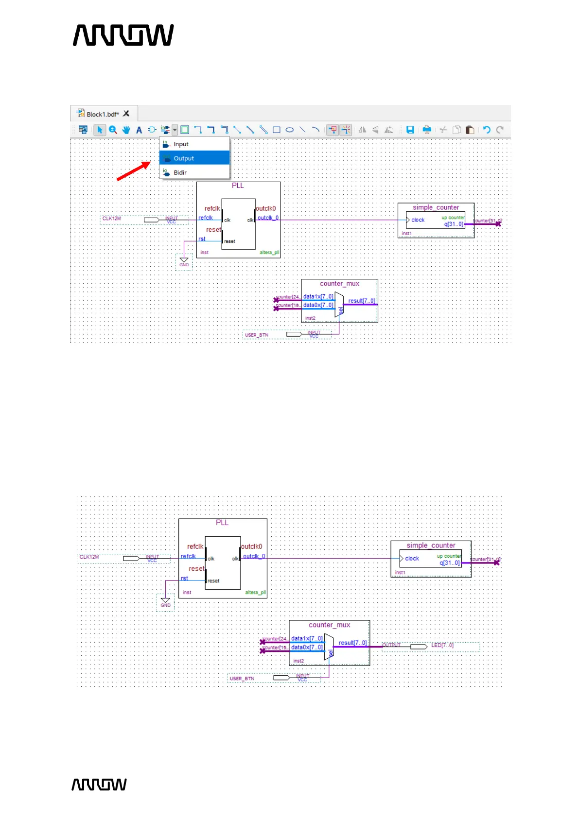 the names of counter tell Quartus Prime to connect the signals together. Overall, the