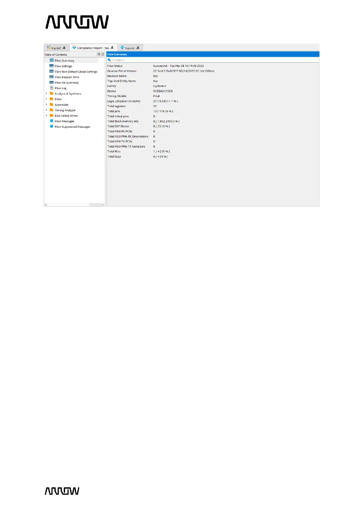 • In the Flow Summary, it can be seen how many logic elements the whole design took, along