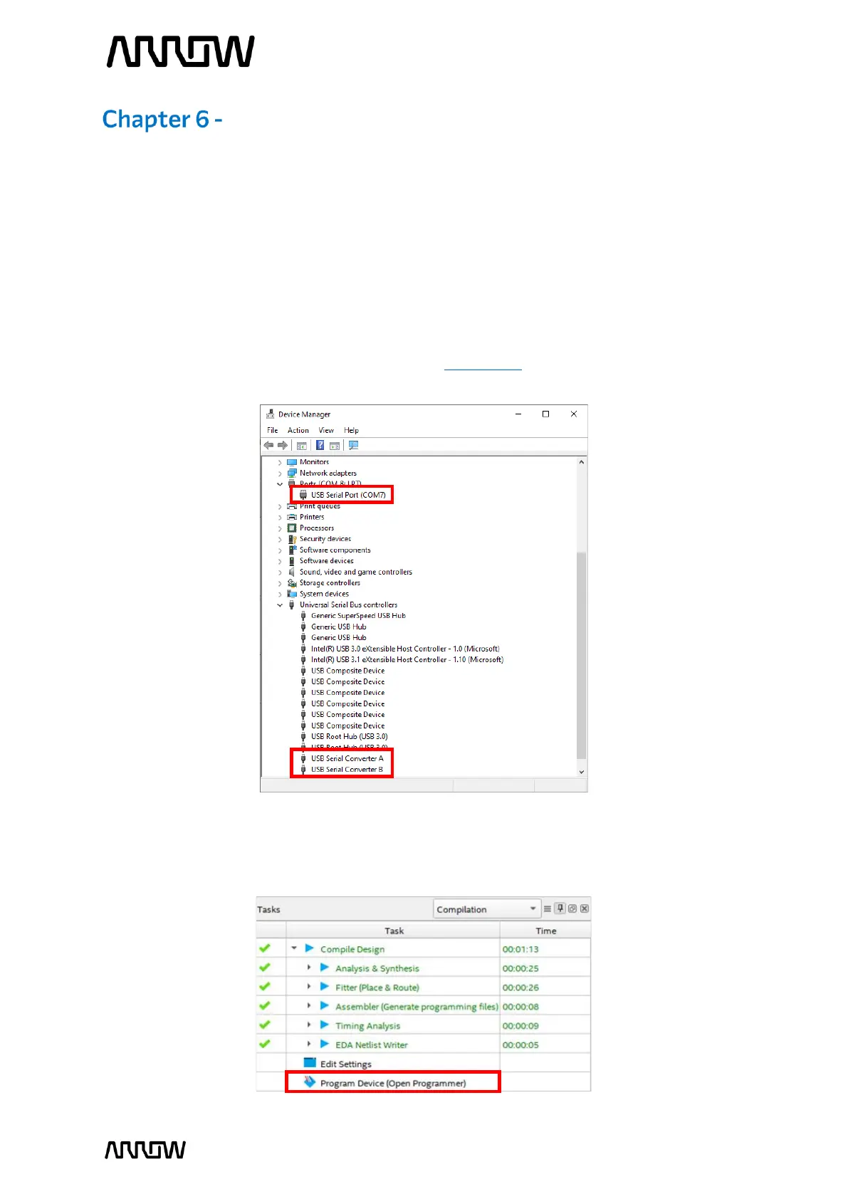entries are highlighted in red (port number may differ depending on your PC). If the Arrow