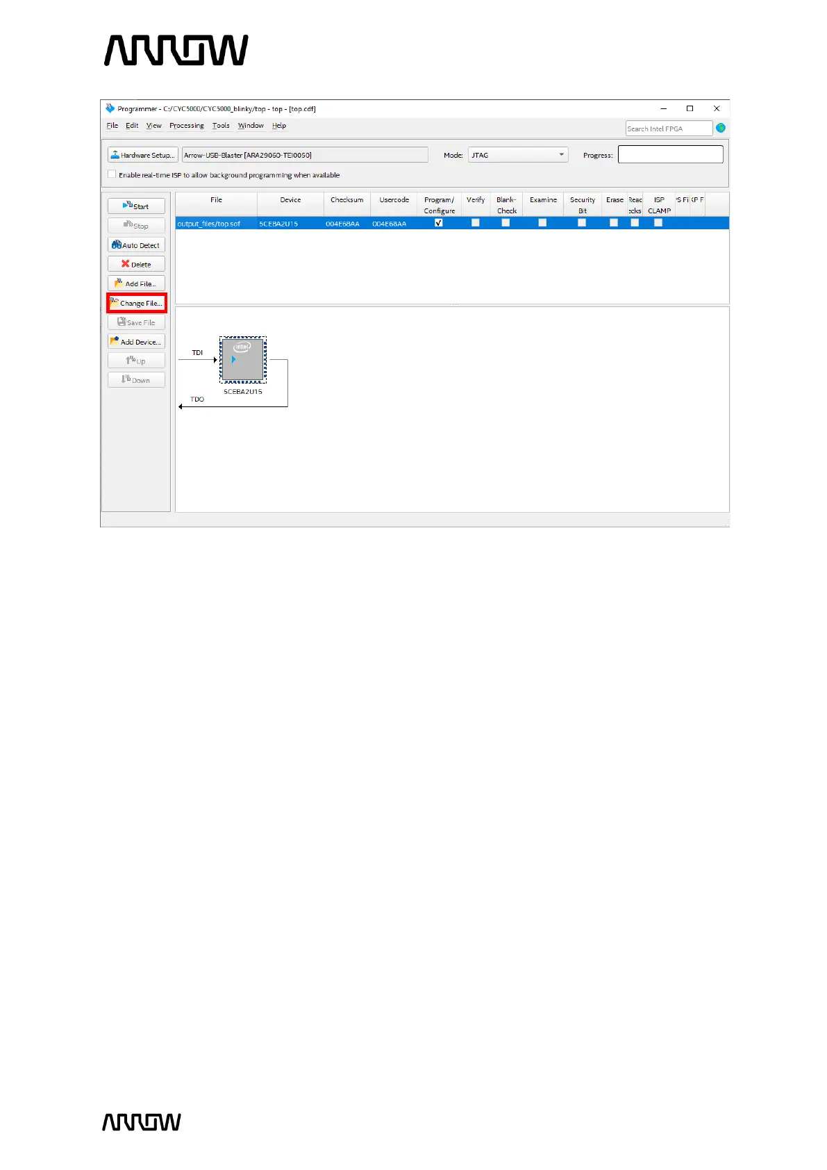 6.2.2.4 Make sure the Programmer shows the correct file and correct parts in the JTAG chain.