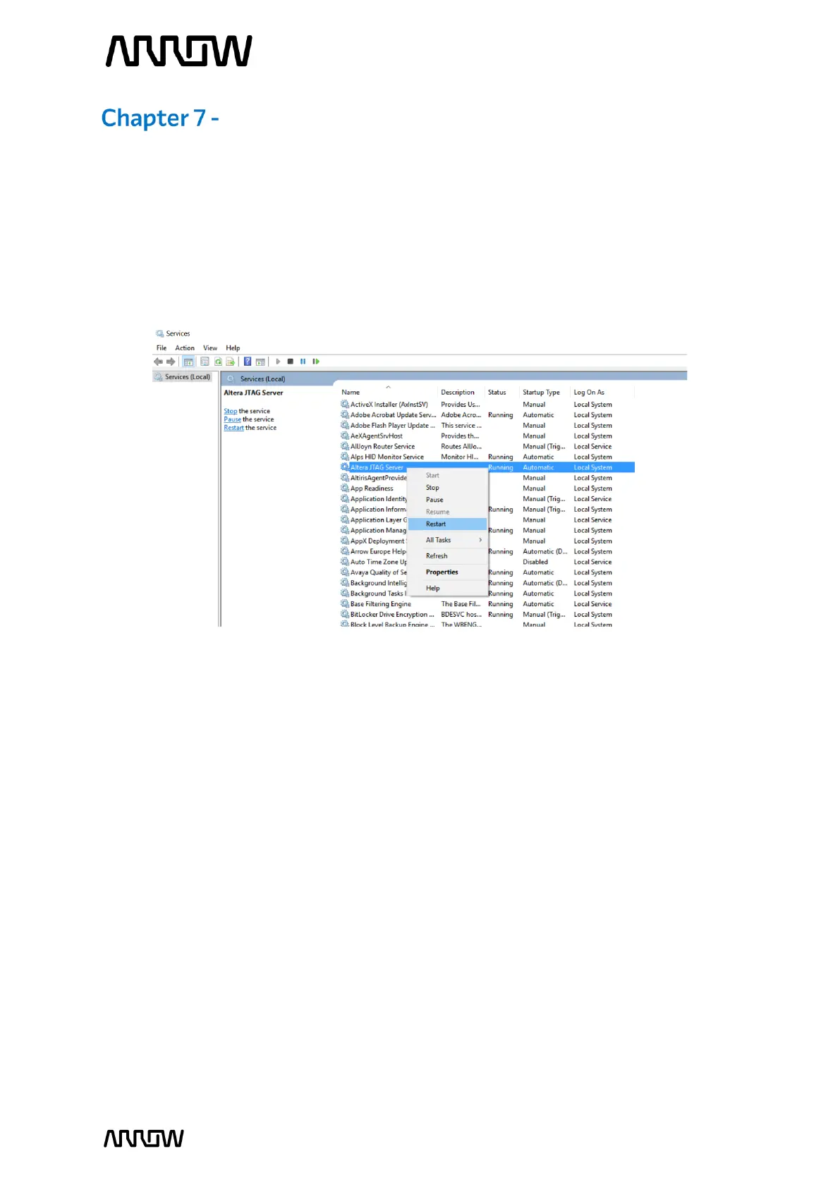Solution: Restart the Altera JTAG Server using the Services application of Windows.
