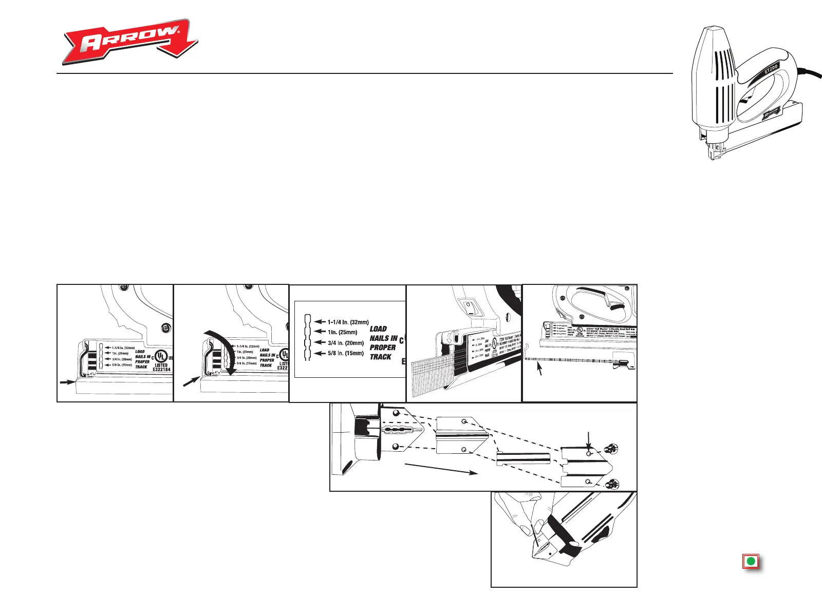 4. La cloueuse ET200™/ET200220™ peut planter 3 tailles différentes de clous— 1" (25mm), 3/4" (20mm) et 5/8" (15mm).