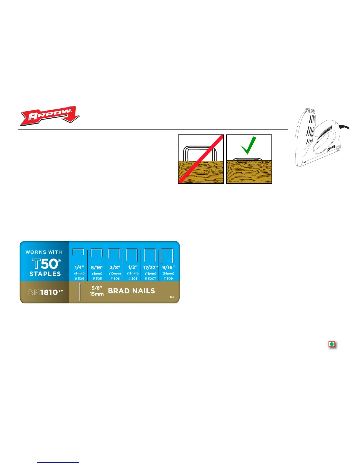 ET501™. Seules les Véritables Agrafes et Clous BN1810™ Arrow