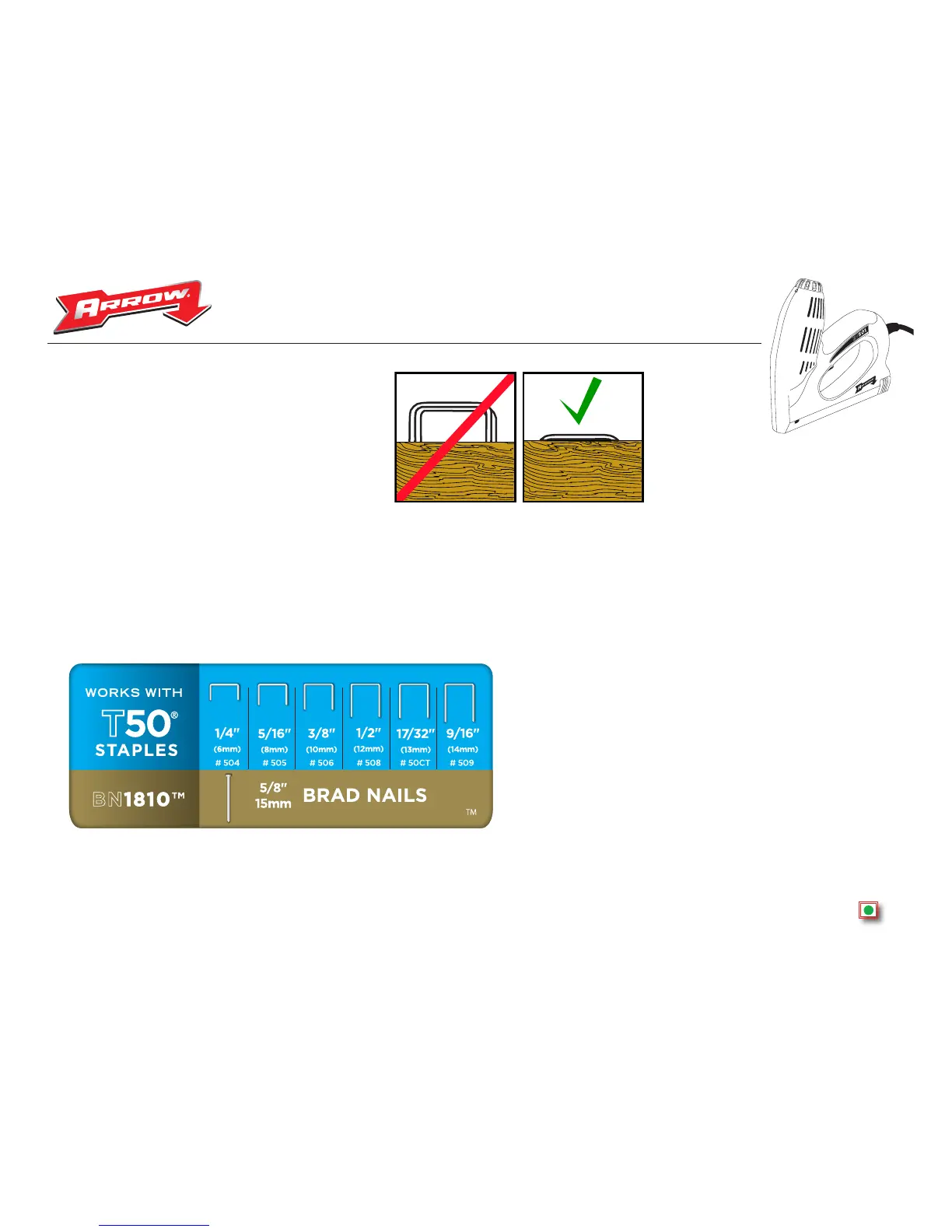 T50® Staples and BN1810™ Nails are made to these exact tolerances to insure top fastening performance. Accept no