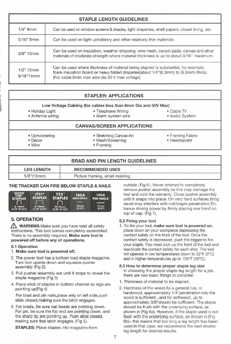 Arrow ET501C - Operation; Firing Your Tool; How to Determine Proper Staple Leg Size