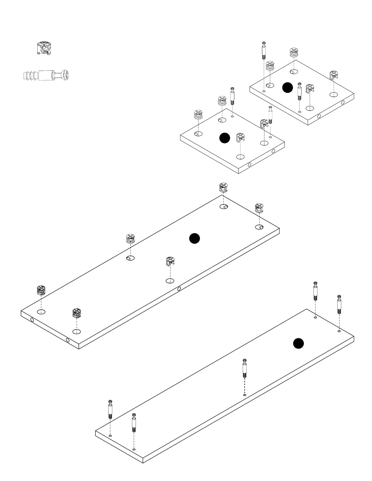 Attach 2 Short Cam Bolts into each Panel V piece.