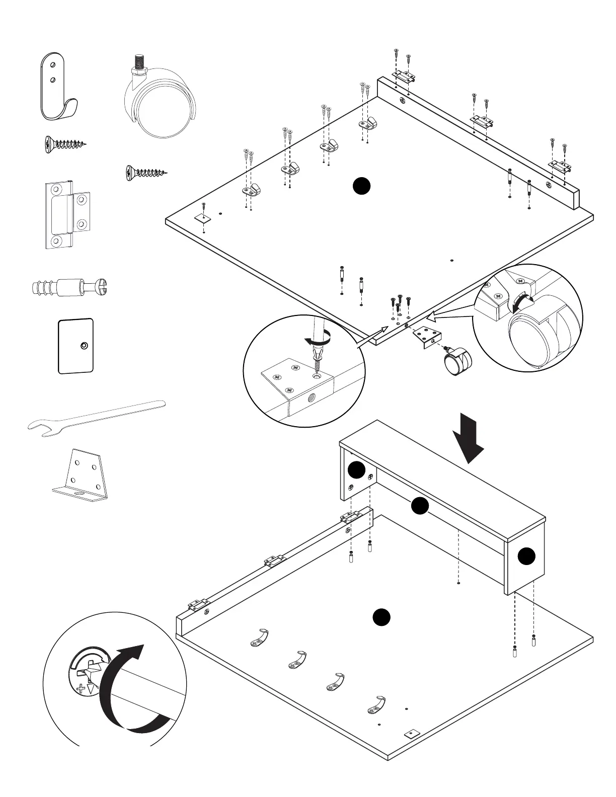 Tighten the Cam Locks by turning