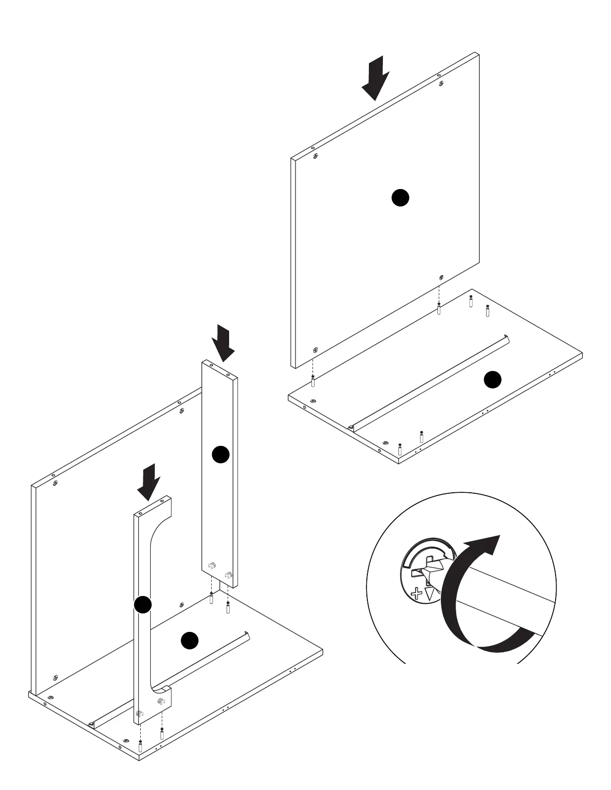 Lay Panel D on the floor as shown, and slide the Cam Bolts