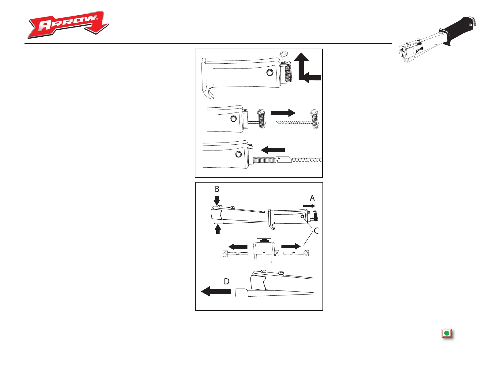 3. Pull out entire staple chamber “D” to clean or clear jams.