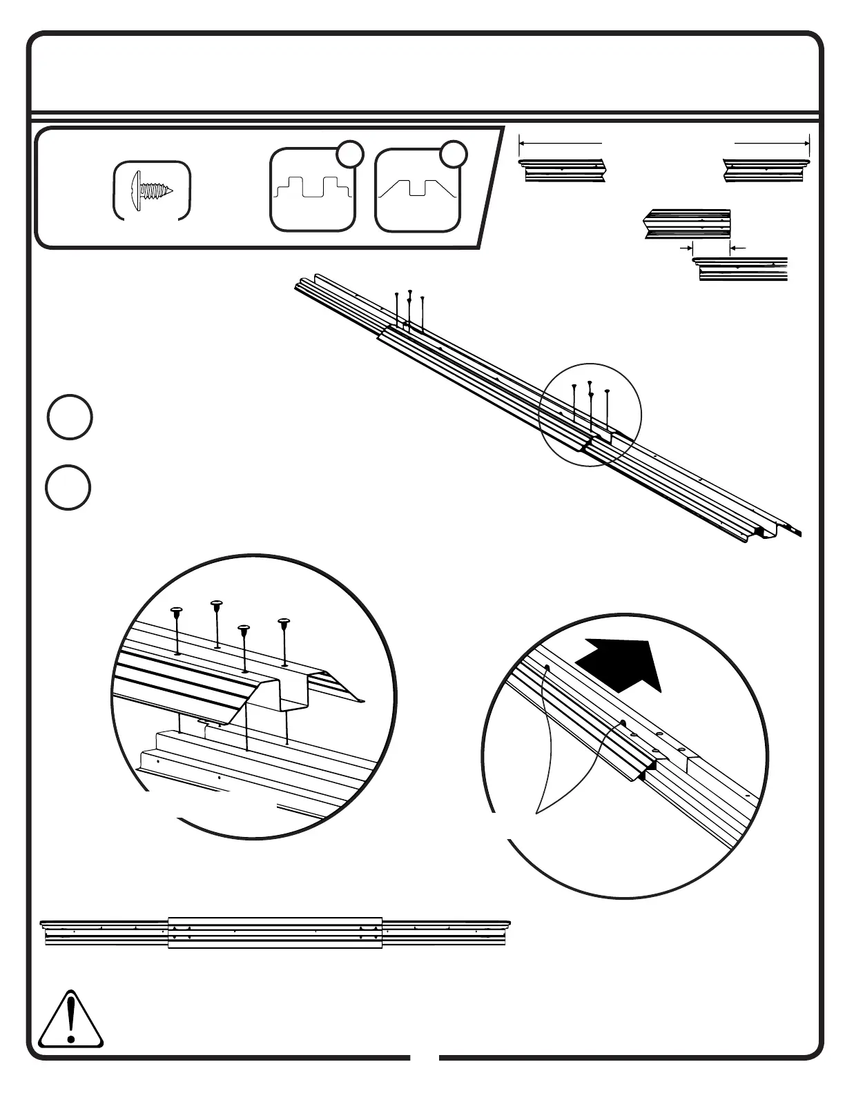 as shown. Insert four (4) screws in each end.