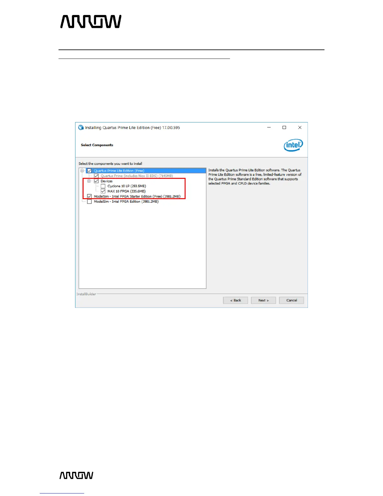 4.1.9 Finish the installation of the Quartus Lite and proceeded to the next section to install Arrow
