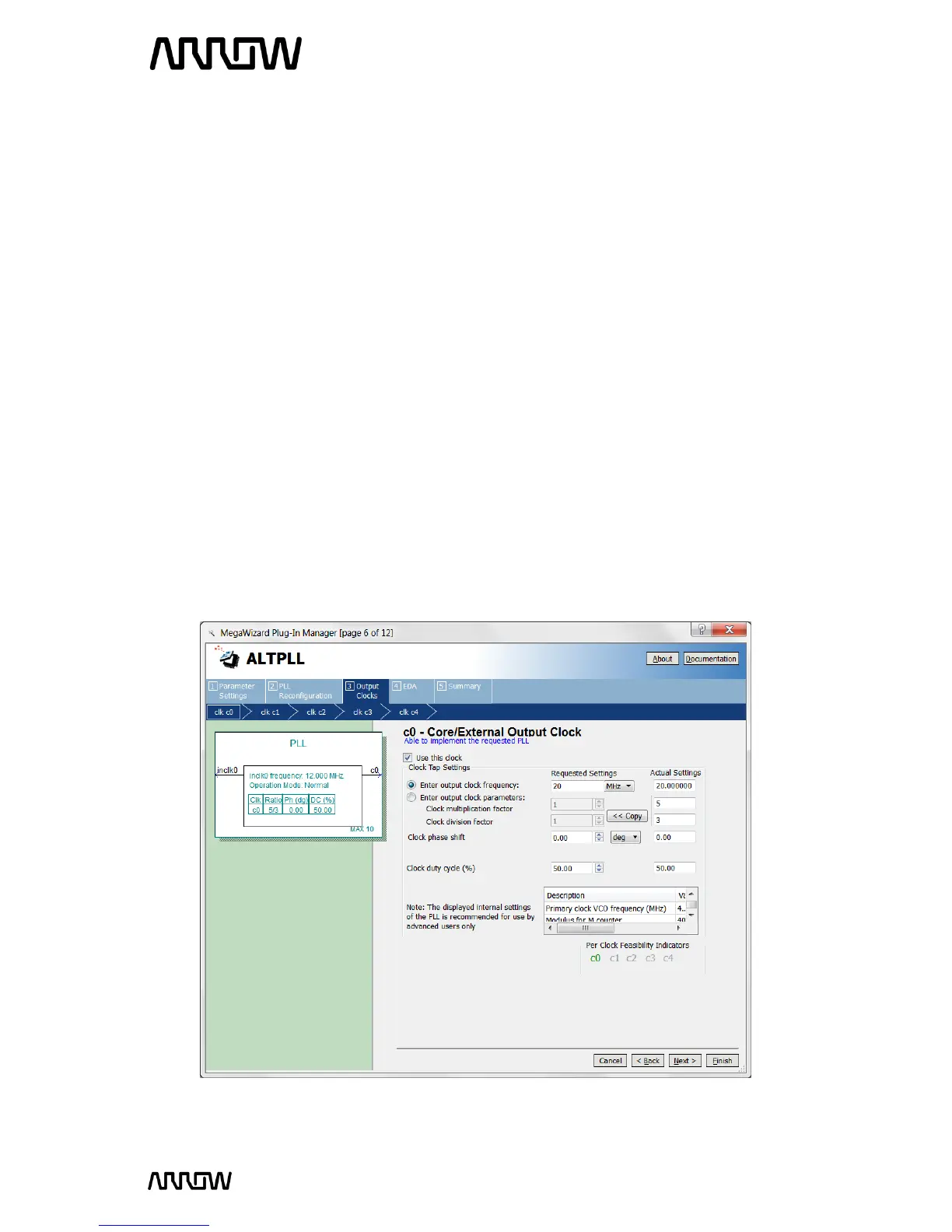 5.2.4.6 On page 6, (c0-Core/External Output Clock) select “Enter output clock frequency” and set