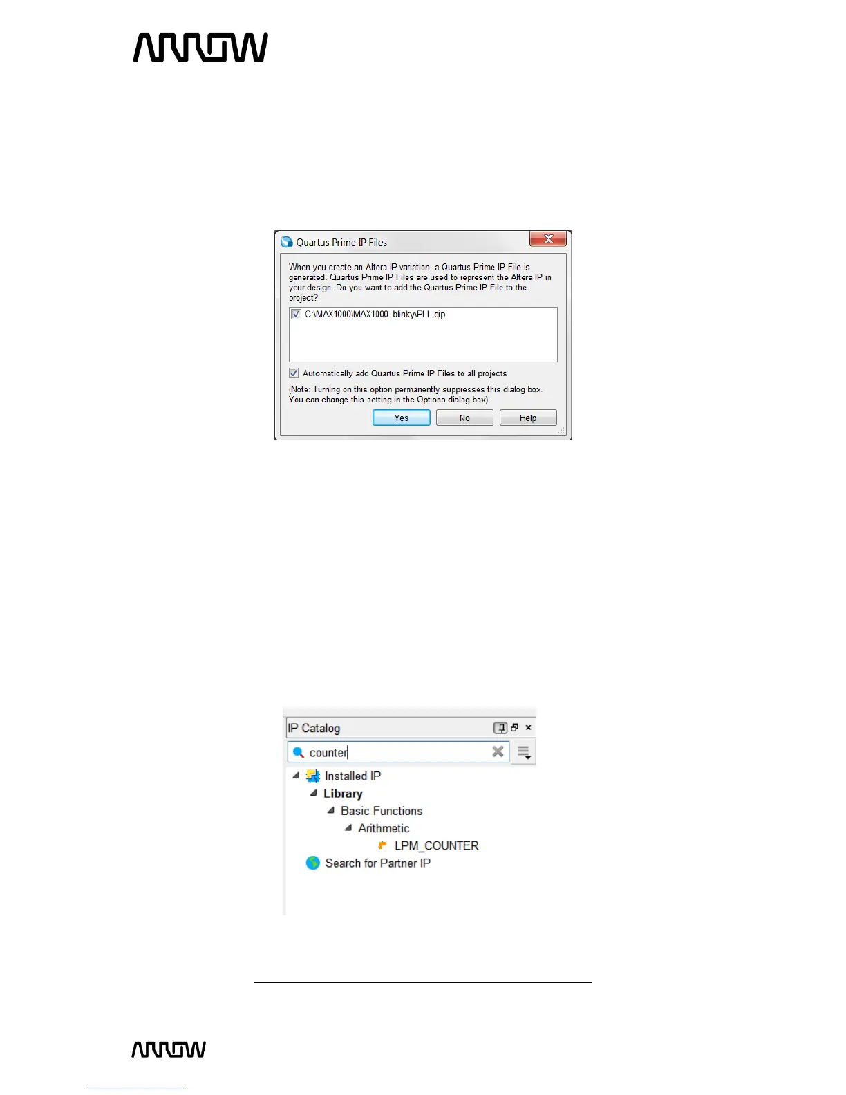 pop-up Window for Quartus Prime IP Files, that asks if the tool should add IP files