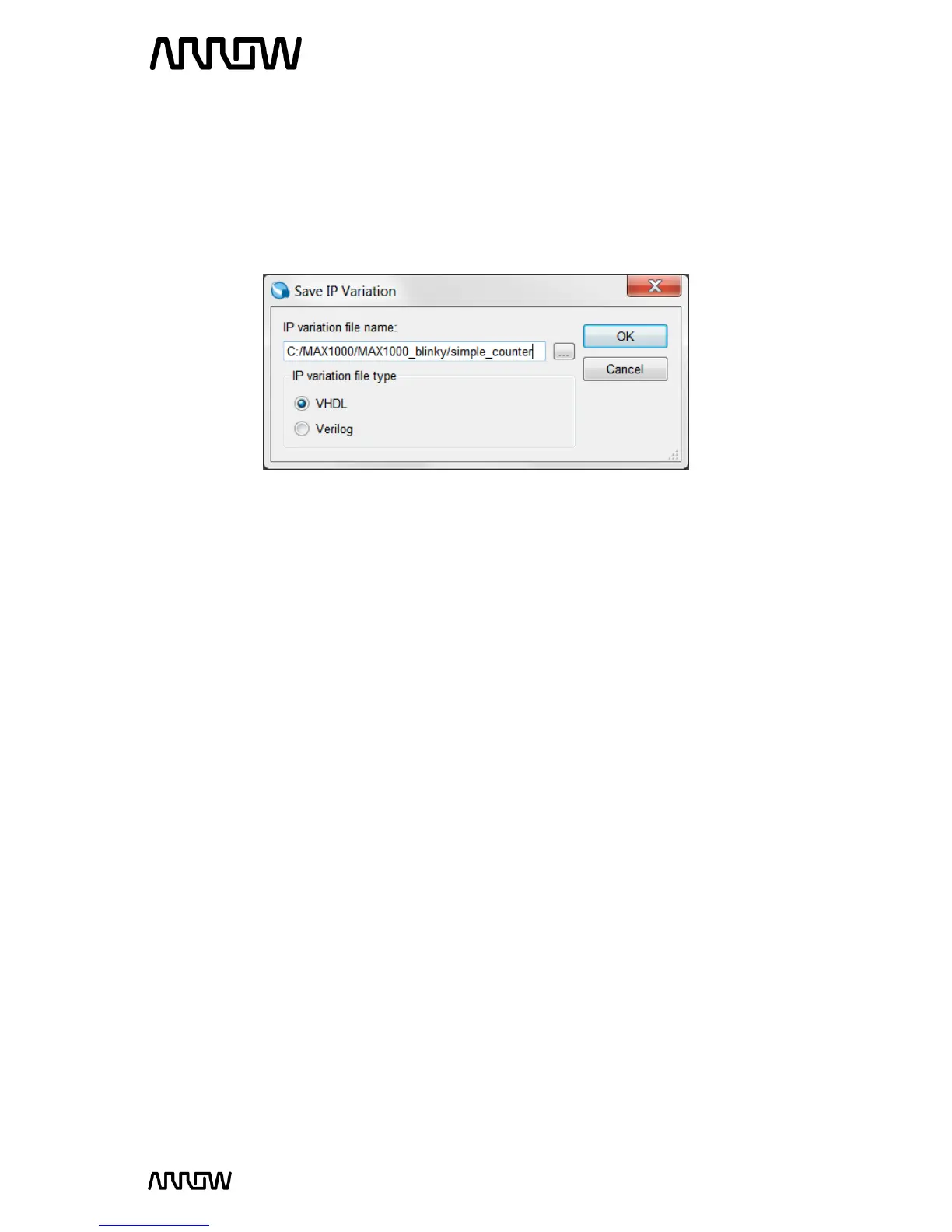 5.2.5.3 When the Save IP Variation pop up appears, enter “simple_counter” and select VHDL as