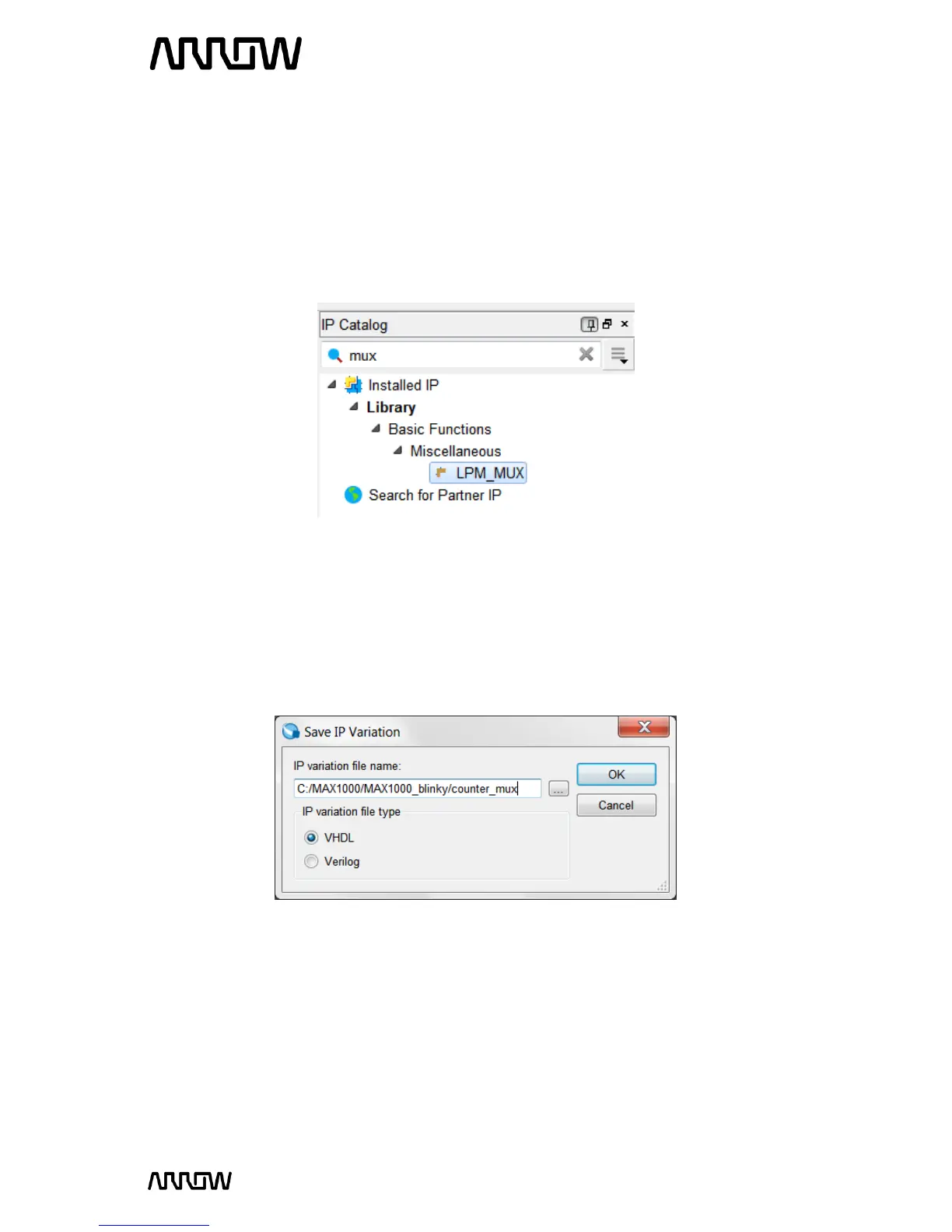 5.2.6.3 In the Save IP Variation, enter the name of the counter_mux and the file type to be VHDL.