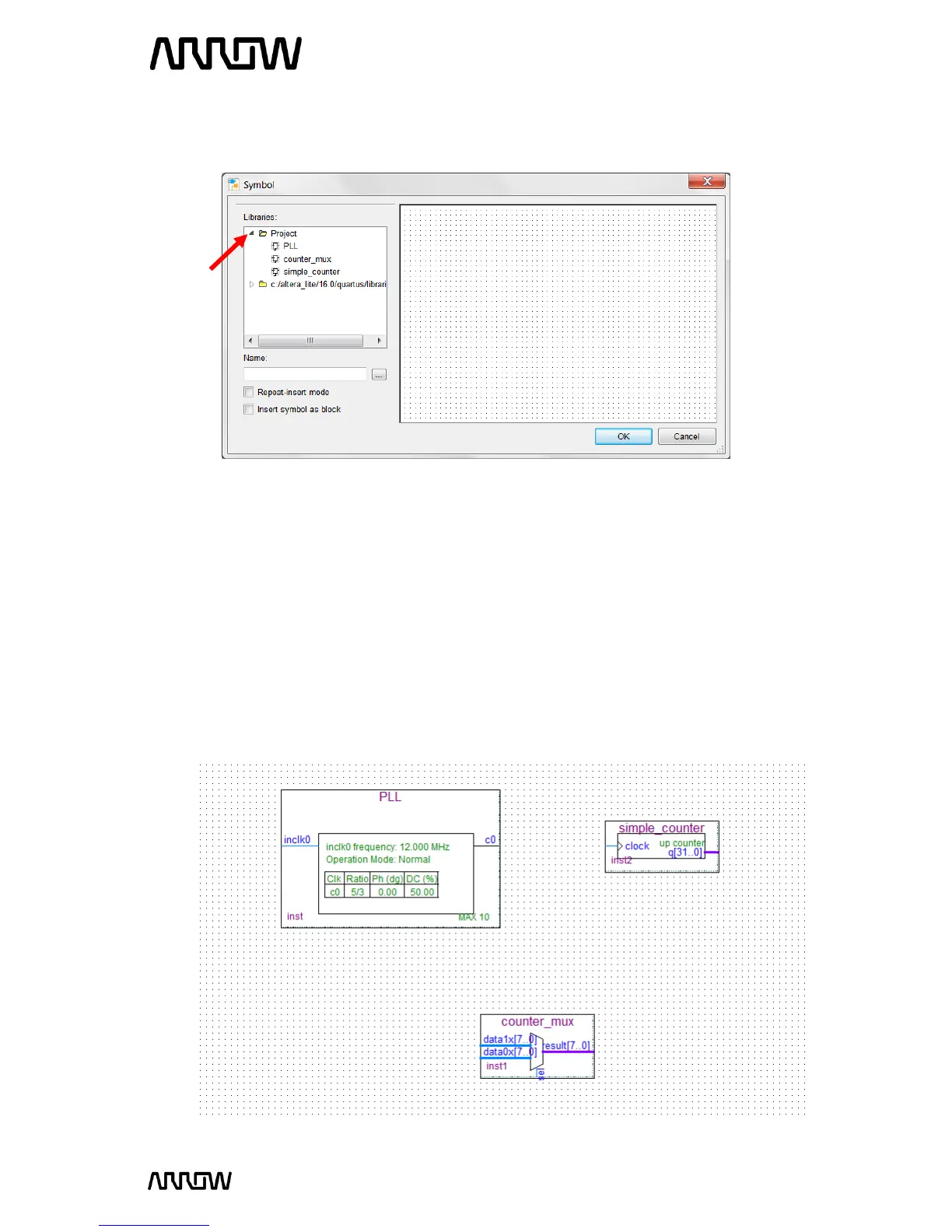 simple_counter to add them to the schematic page. The order of adding the components