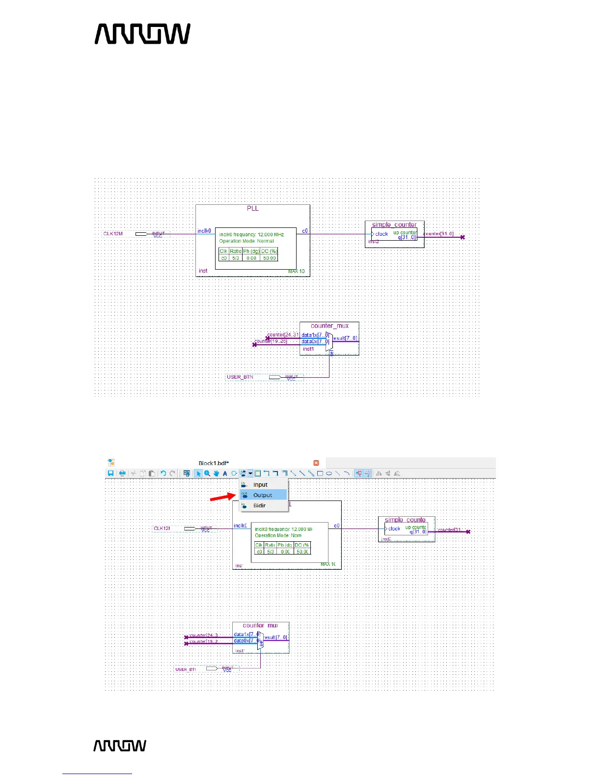 to be the user button of the MAX1000 board to select the mux.