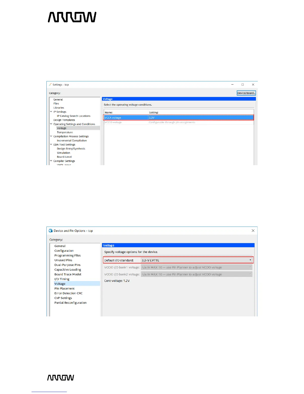 to “3.3-V LVTTL” and press “OK” to all the windows.