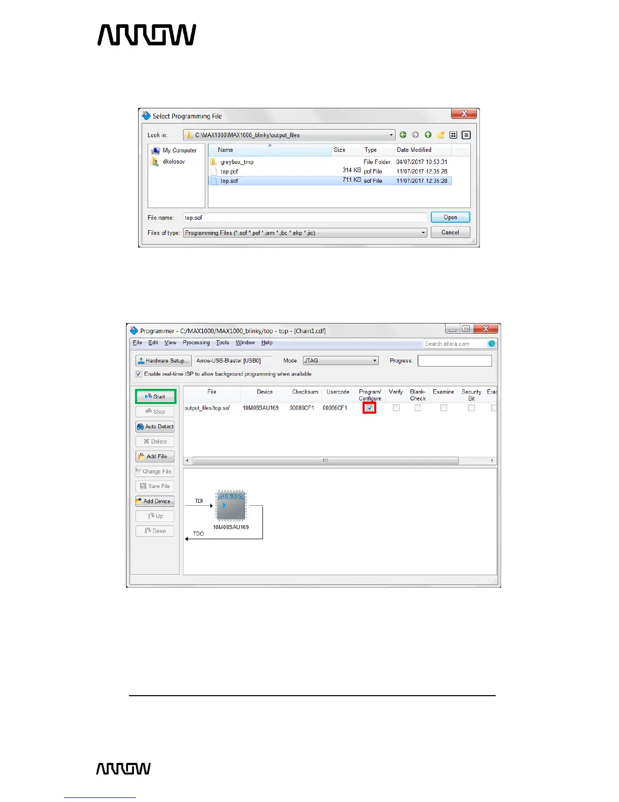 click “Start” (highlighted in green above) to program the MAX1000. You should see the