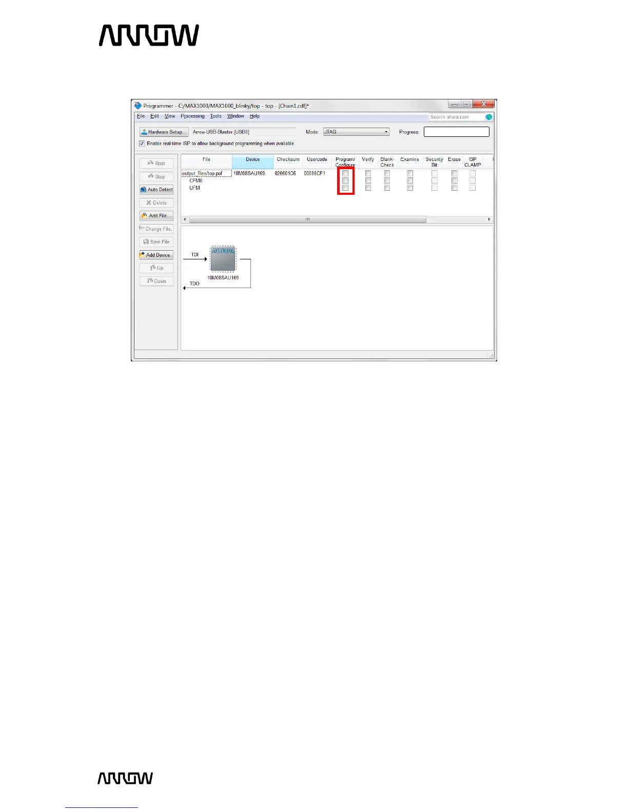 Select all the checkboxes under the Program/Configure for CFM0 and UFM (highlighted in red