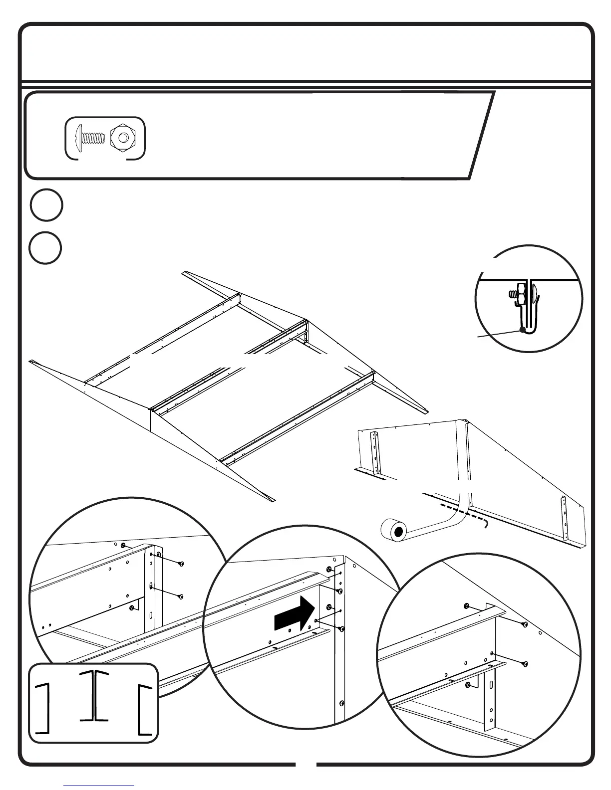 Position the Roof Beams as shown below and install using two (2) bolts and nuts
