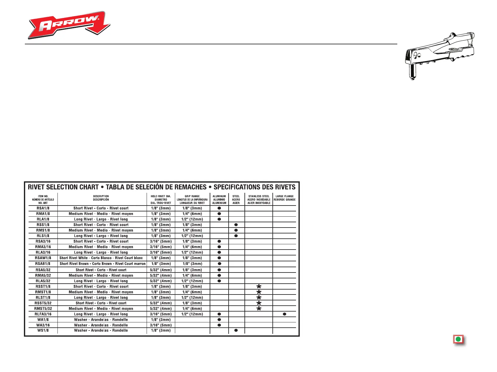Déconseillé pour l'utilisation avec des rivets tout-acier de diamètre 3/16" (5mm)