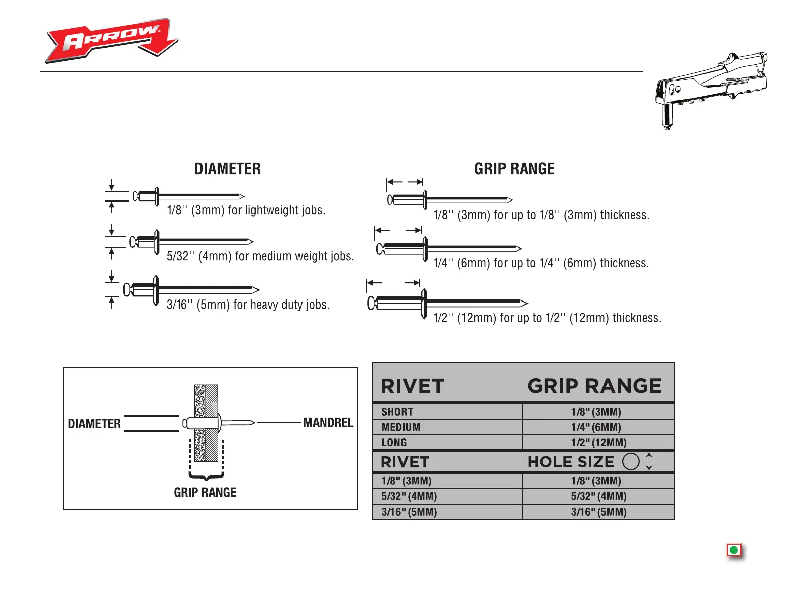 DIAMETER AND GRIP RANGE