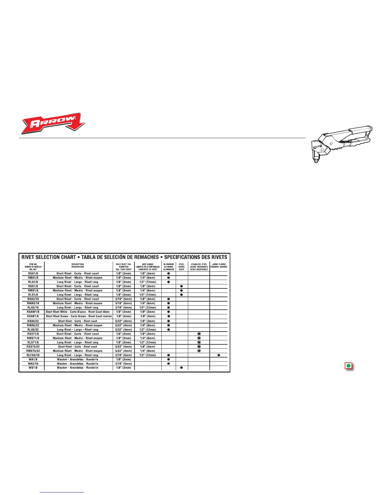 Arrow accessories and genuine Arrow rivets are available at retail outlets, hardware stores,