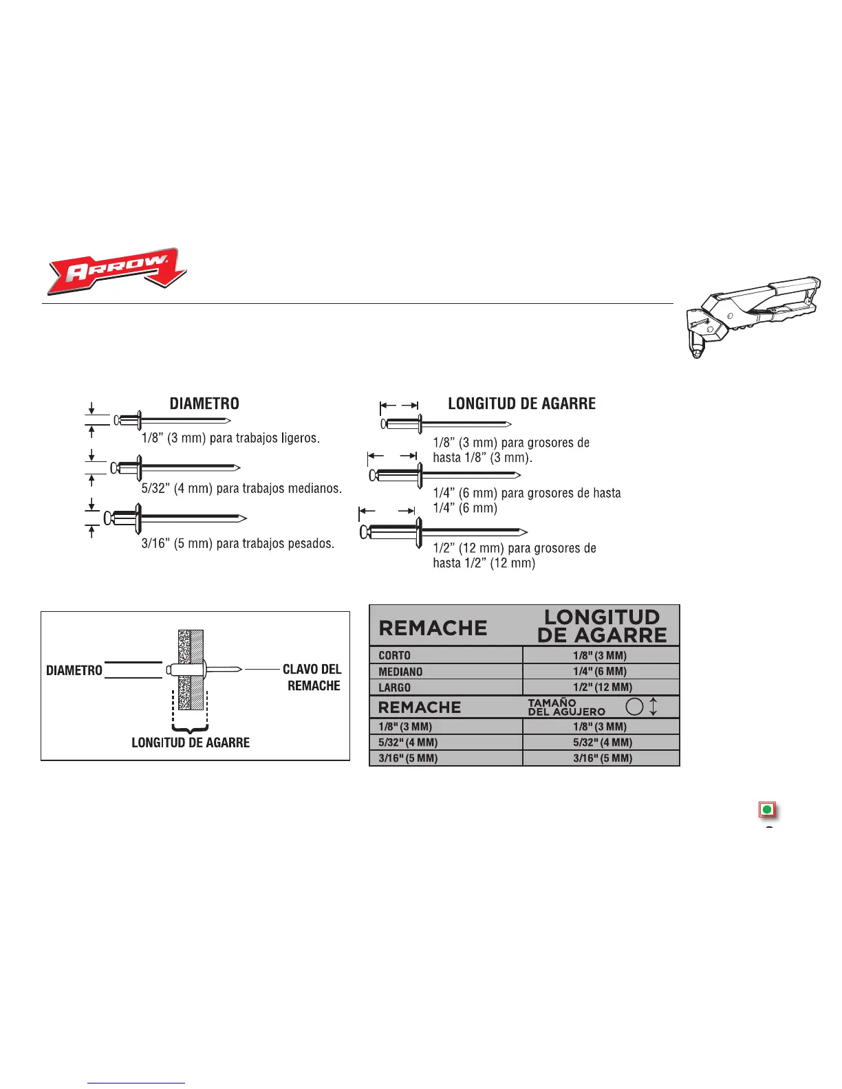 No se recomienda usar la RHT300™ con remaches de acero de 3/16’ (5mm).