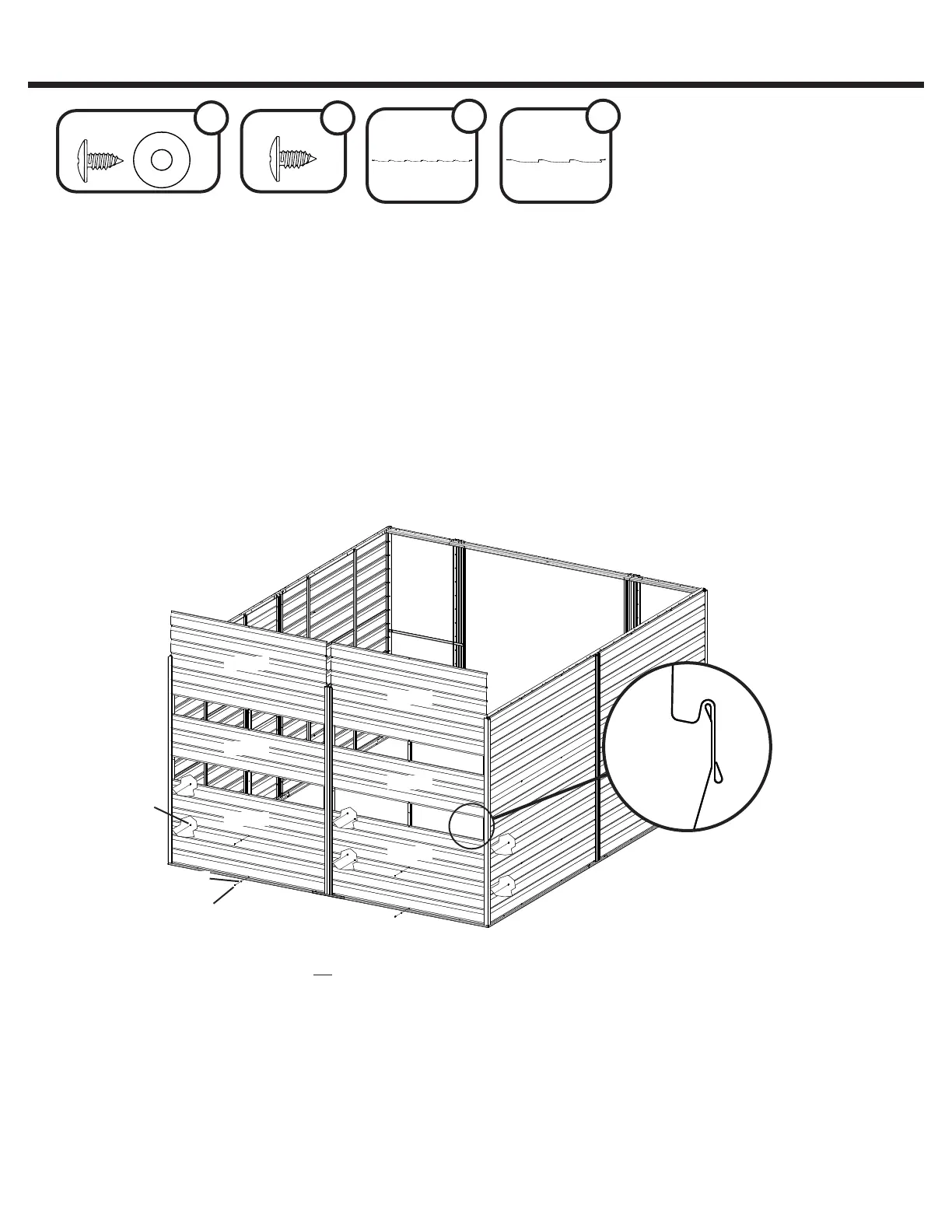 Depuis l’intérieur de l’abri, attacher tous les panneaux de bardage latéral aux poteaux d’angle