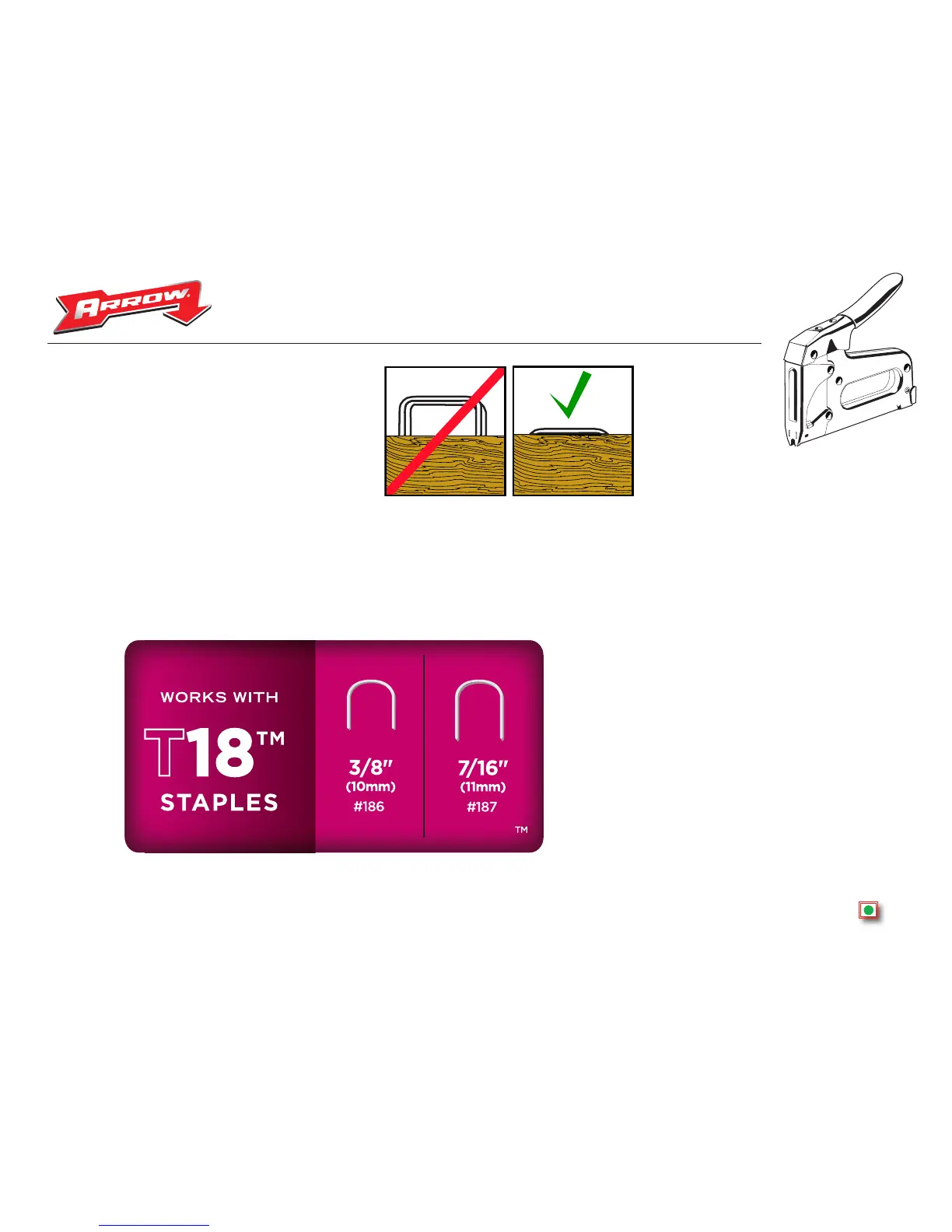 knows the proper staple tolerances required for best performance of the T18™ Staple Gun. Only Genuine Arrow