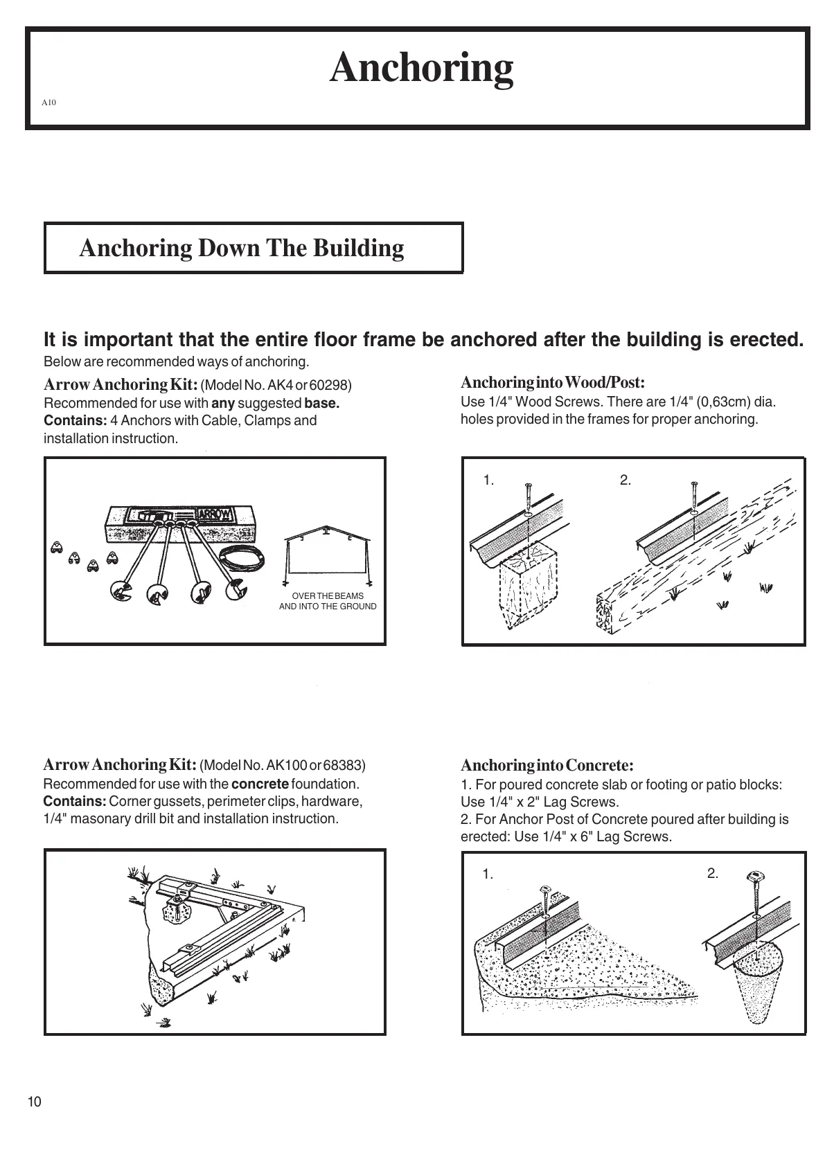 Arrow Anchoring Kit: (Model No. AK4 or 60298)