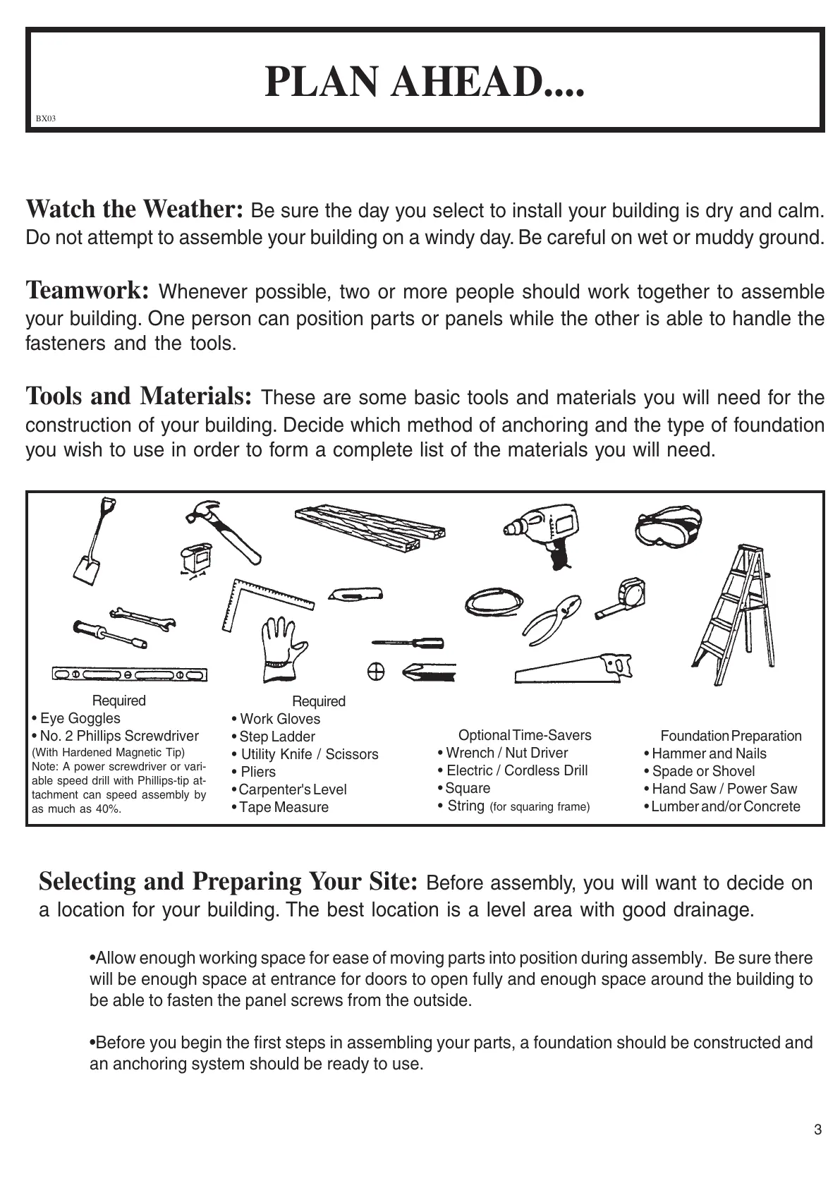 Selecting and Preparing Your Site: Before assembly, you will want to decide on