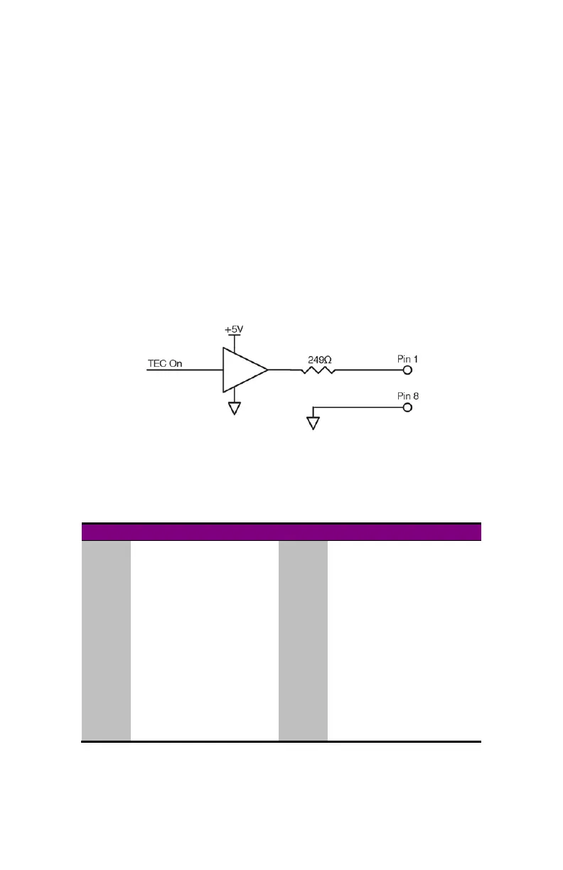 when the TEC is on. The signal is driven from a +5V buffer with a 249Ω resistor